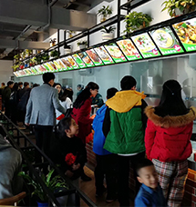 連鎖小吃店,現(xiàn)場人氣爆棚,使用了多環(huán)牌無無煙管油煙機的商